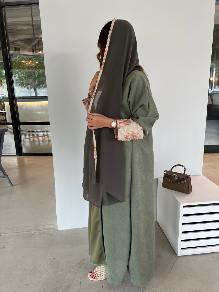 التفاصيل : قماش شاموه ومطرز هندي ، قصة كلوش ، طرحة زيتي .