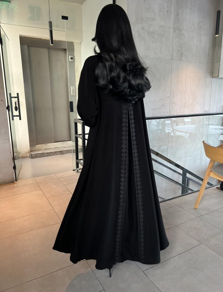 قماش كريب ملكي وكلفة، قصة كلوش، طرحة اسود