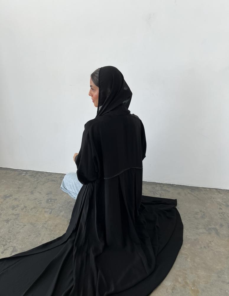 قماش كريب ياباني ، قصة كلوش، طرحة اسود .