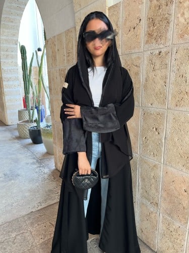 قماش كريب ناعم ،قصة كلوش ، طرحة اسود .