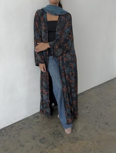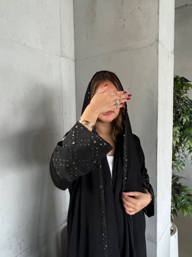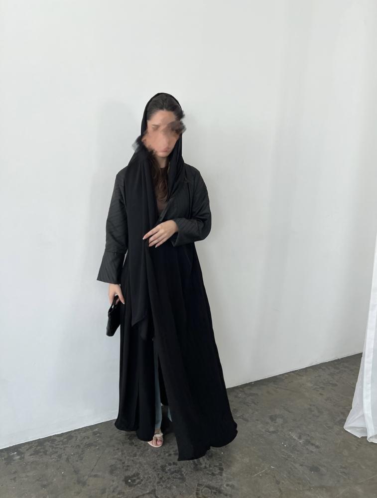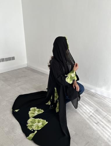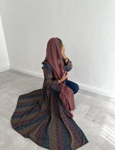 قماش كريب ملكي مع جاكار ، قصة كلوش، طرحة اسود .