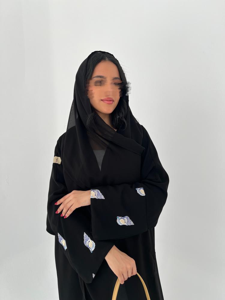قماش كريب ملكي ،قصة ربع بشت ، طرحة اسود .