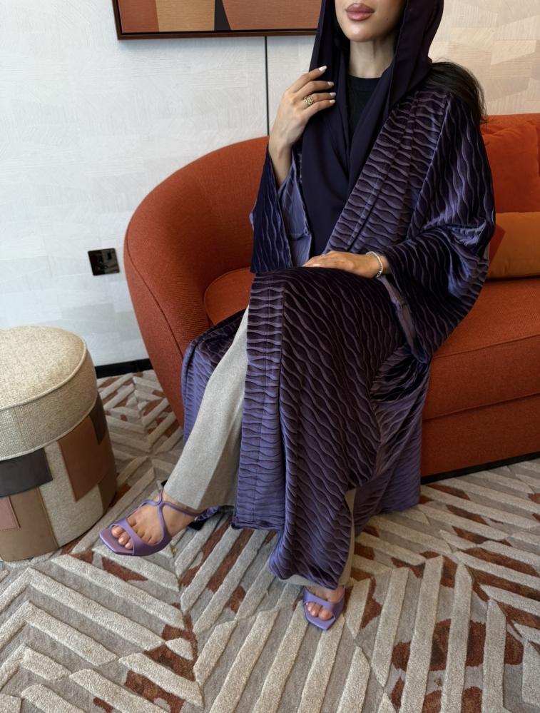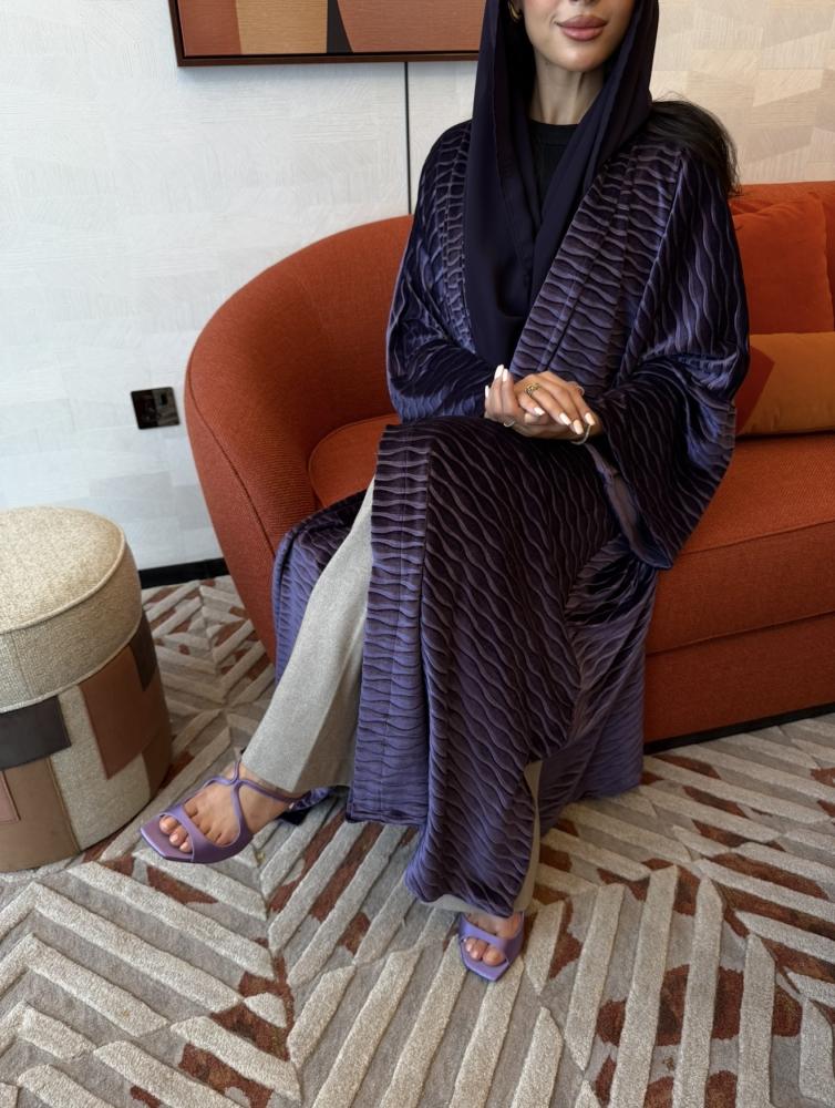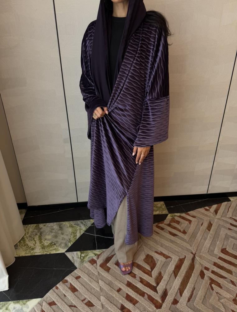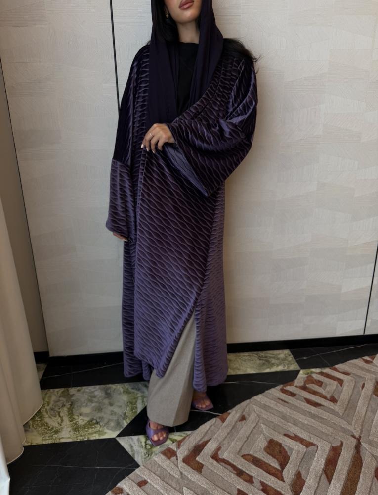 قماش مخمل ، قصة ربع بشت مع فتحات جانبية ، طرحة سادة.