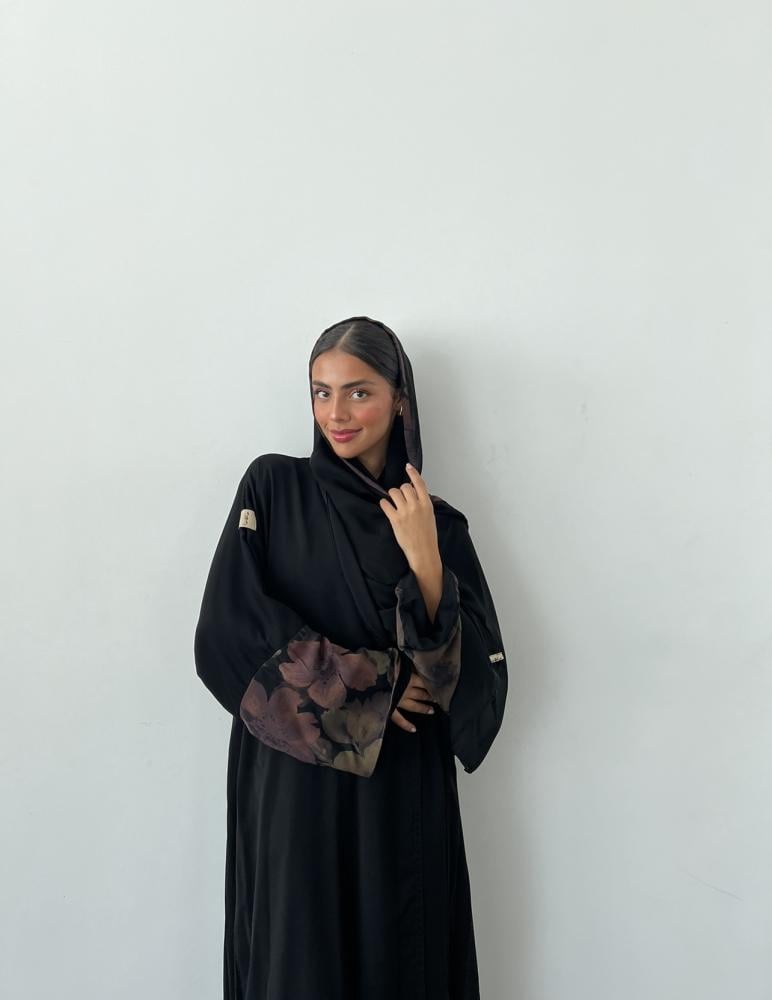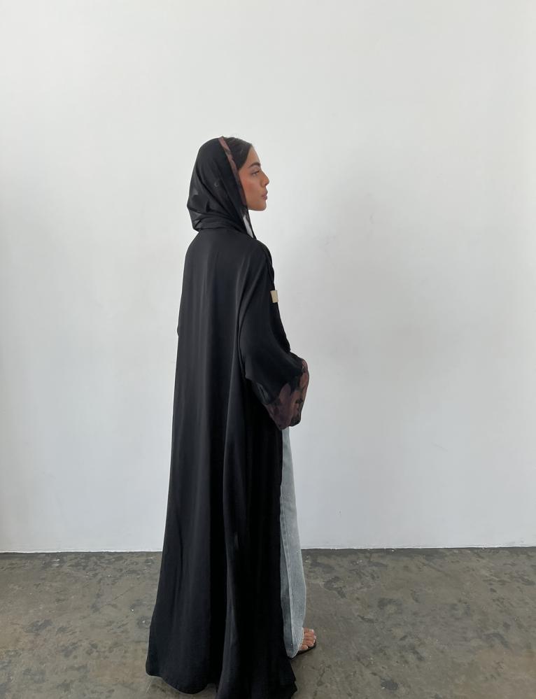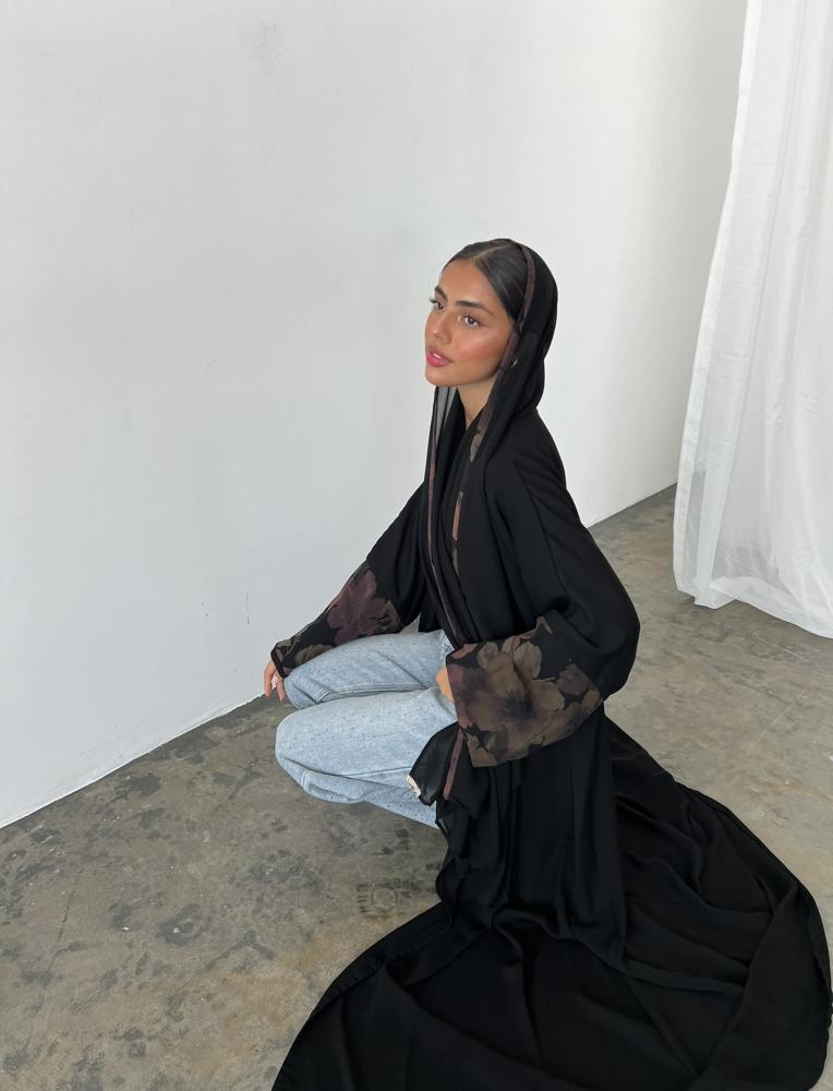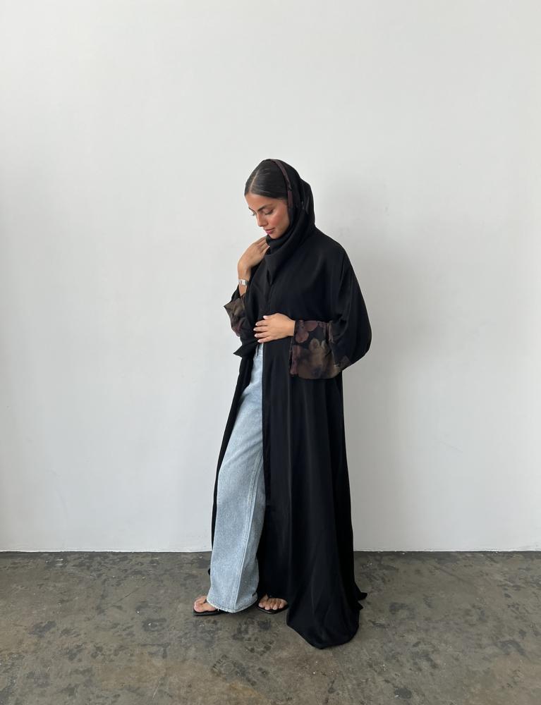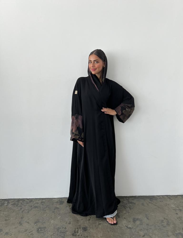 قماش كريب ياباني وشيفون طبيعي ، قصة كلوش، طرحة اسود.