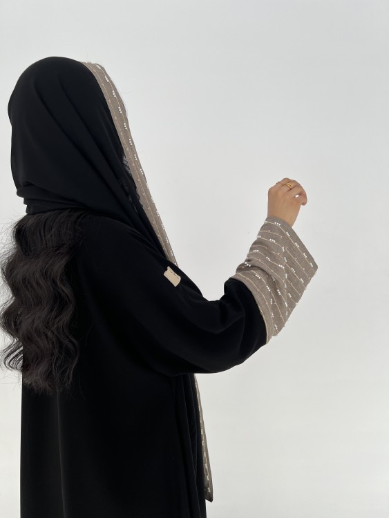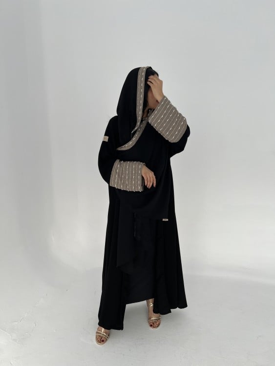 قماش كريب ملكي وكتان ، قصة كلوش ، طرحة أسود .