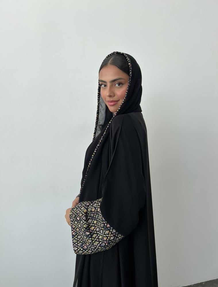 قماش كريب ، قصة كلوش ، طرحة اسود .