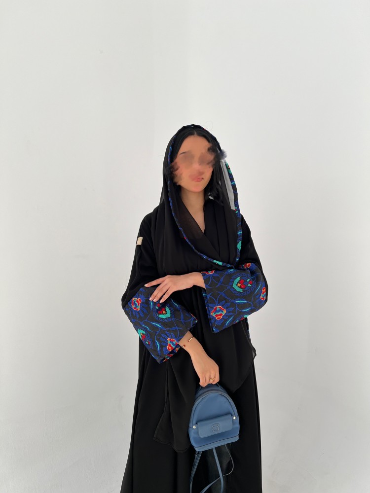 قماش كريب ملكي &لنن ،قصة كلوش ، طرحة اسود .