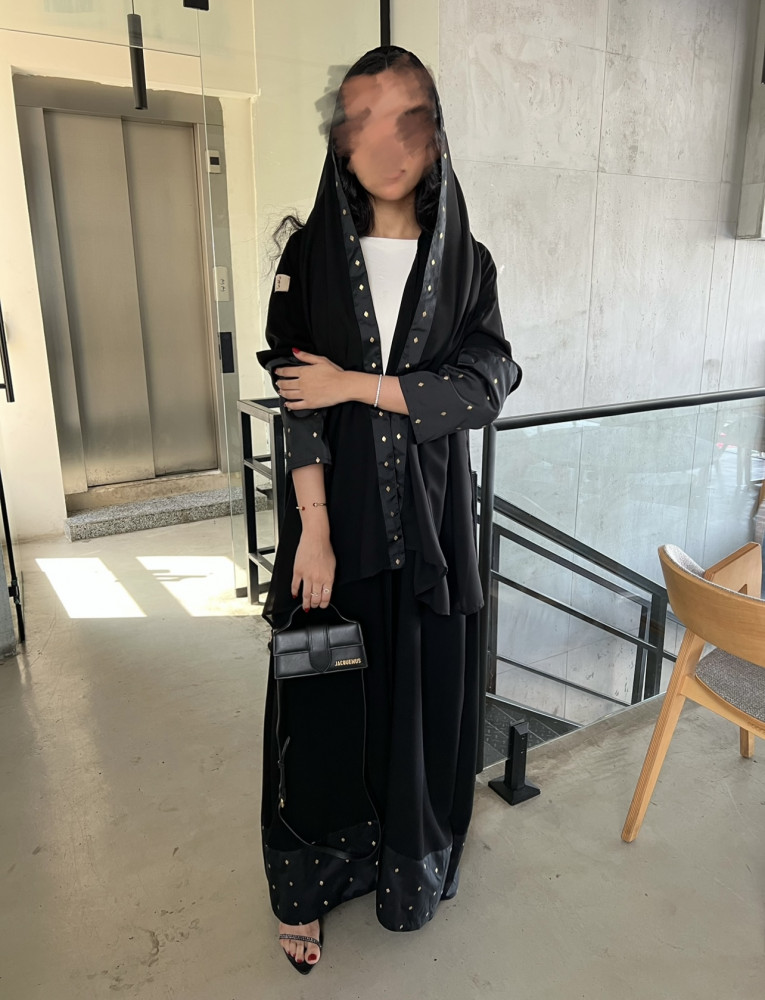 قماش كريب ملكي و تفته ،قصة كلوش، طرحة اسود.