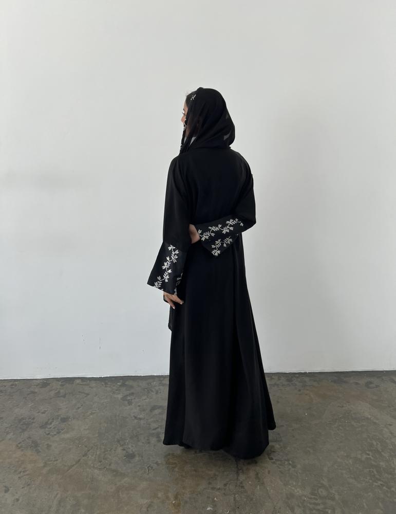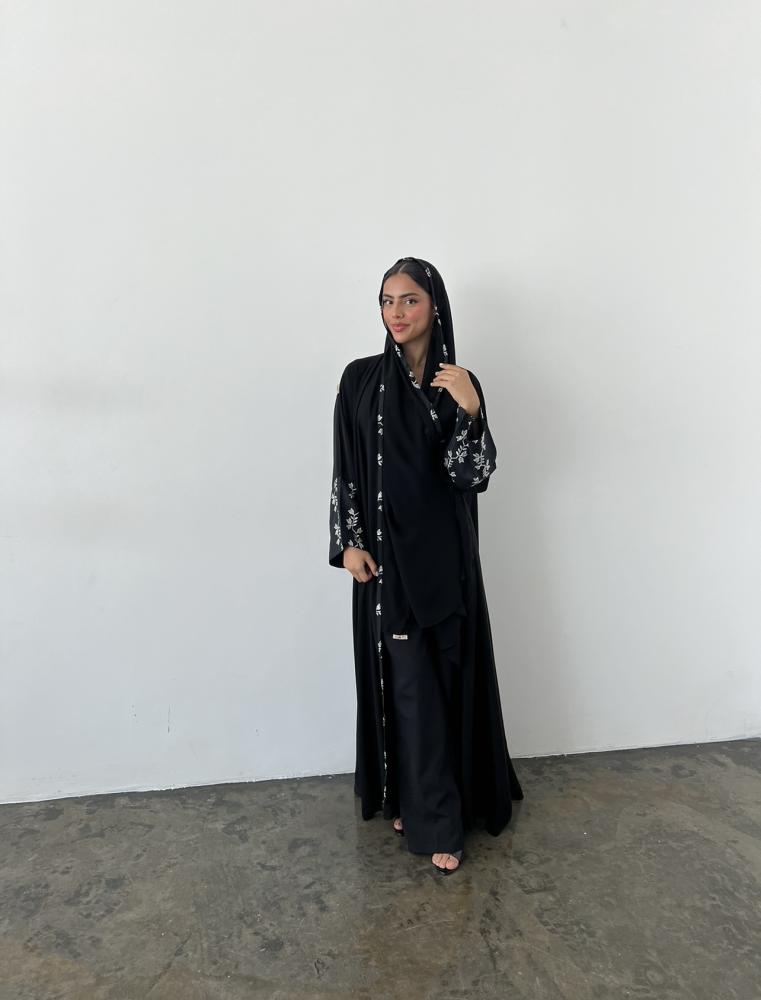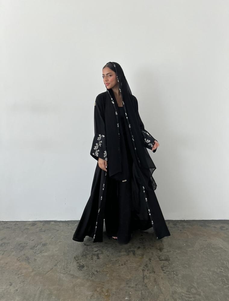 قماش كريب ، قصة كلوش ، طرحة اسود .