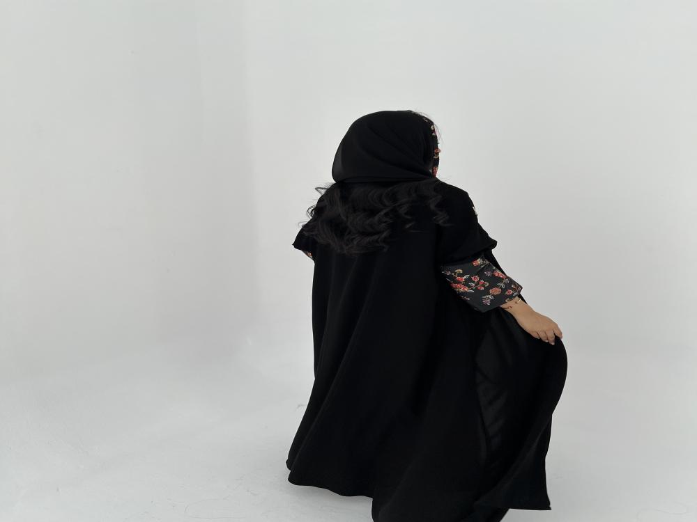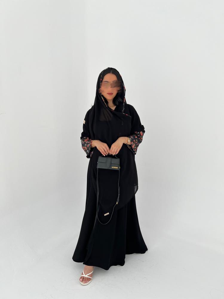 قماش كريب ملكي ،قصة كلوش ، طرحة اسود .