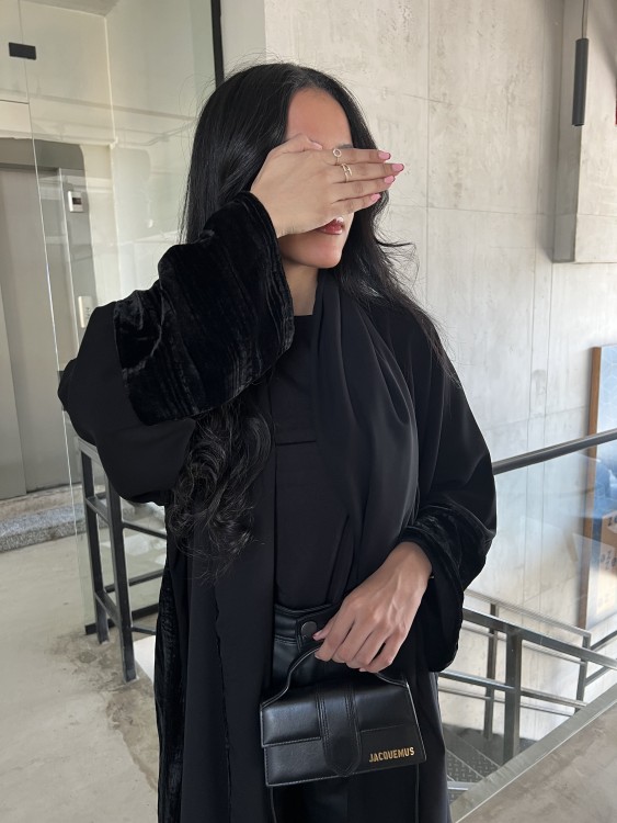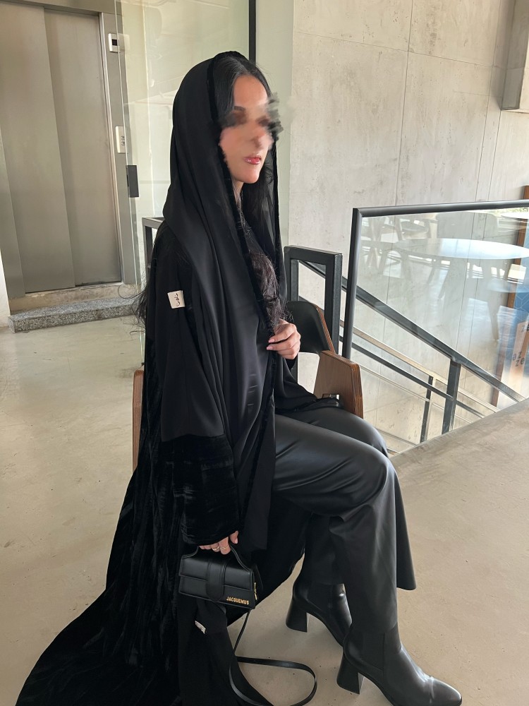 قماش كريب ملكي ومخمل ، قصة كلوش ، طرحة أسود .