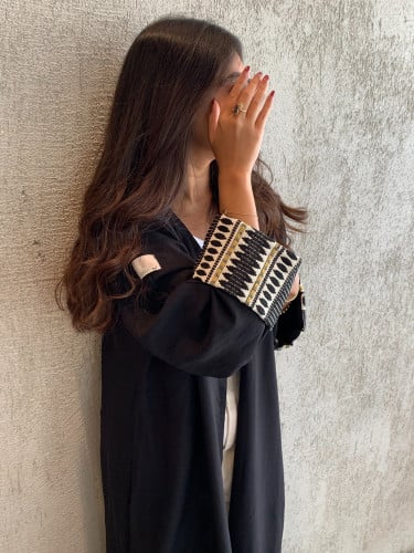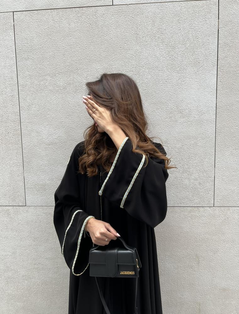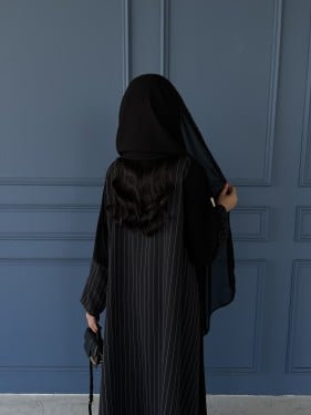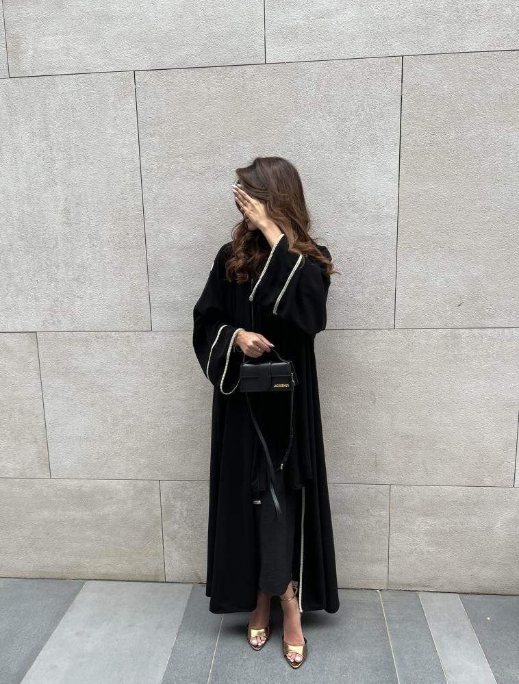 قماش كريب ملكي وكلفة ، قصة كلوش، طرحة اسود .