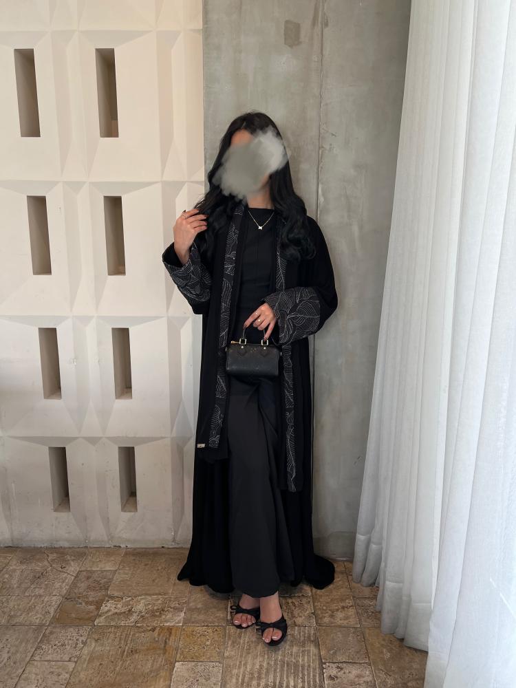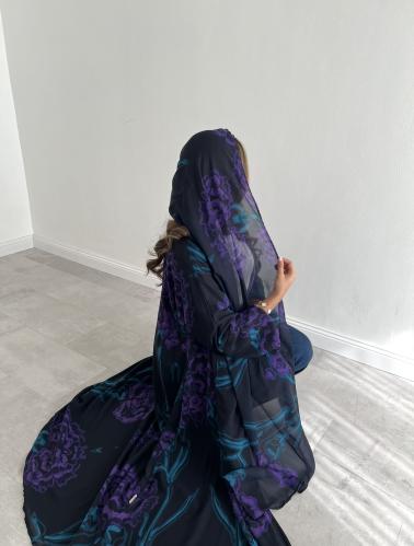 قماش كريب ملكي مع مطرز هندي ، قصة كلوش، طرحة اسود .