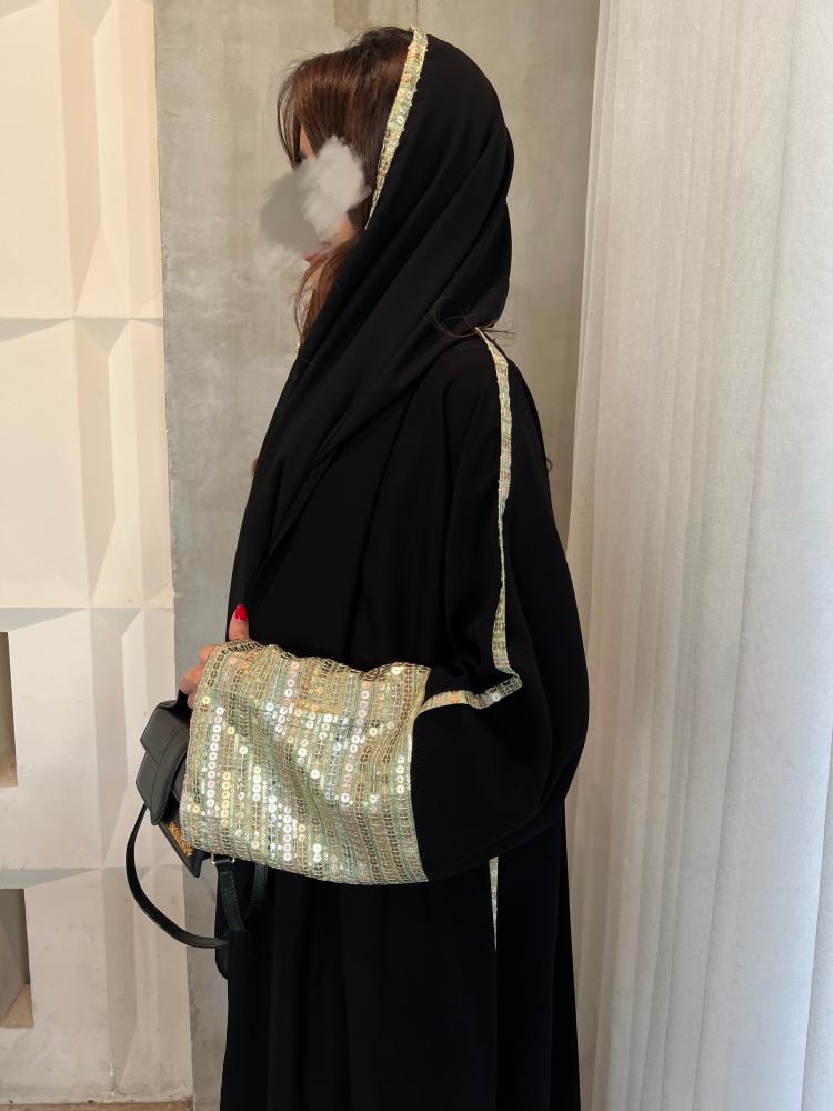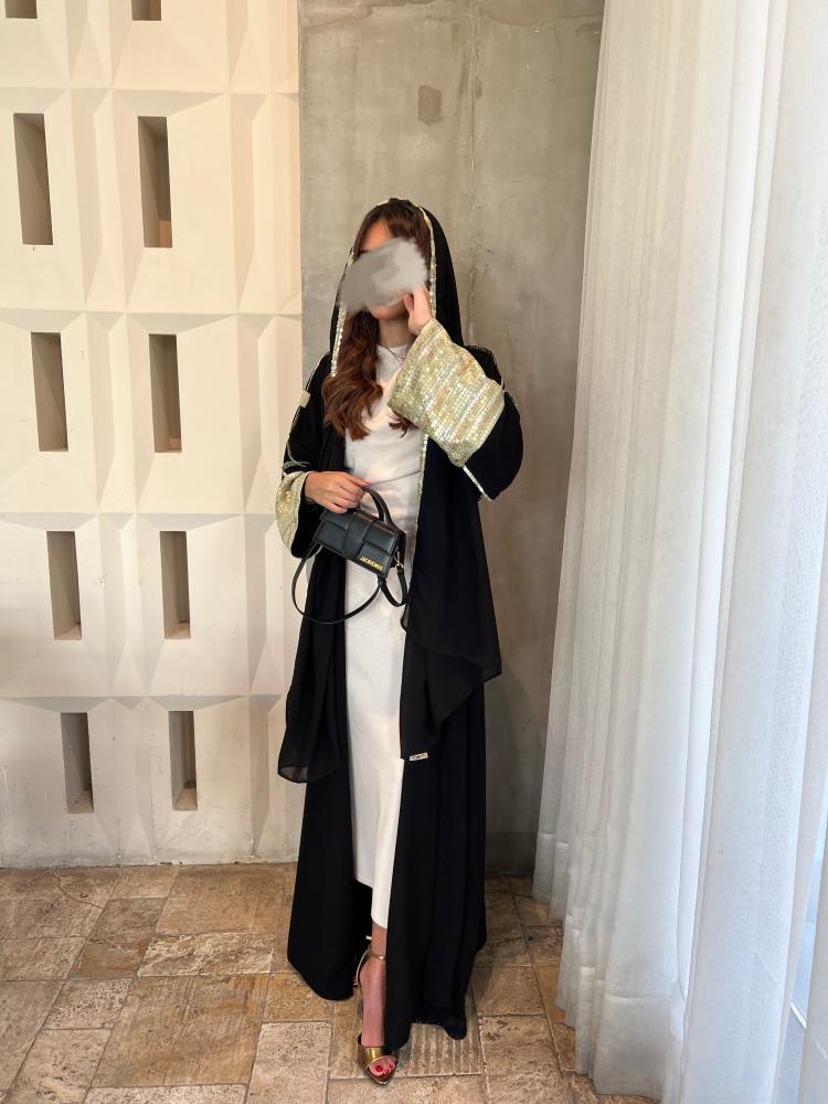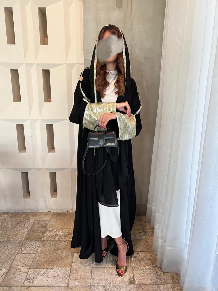 قماش كريب ملكي مع مطرز هندي ، قصة كلوش، طرحة اسود .