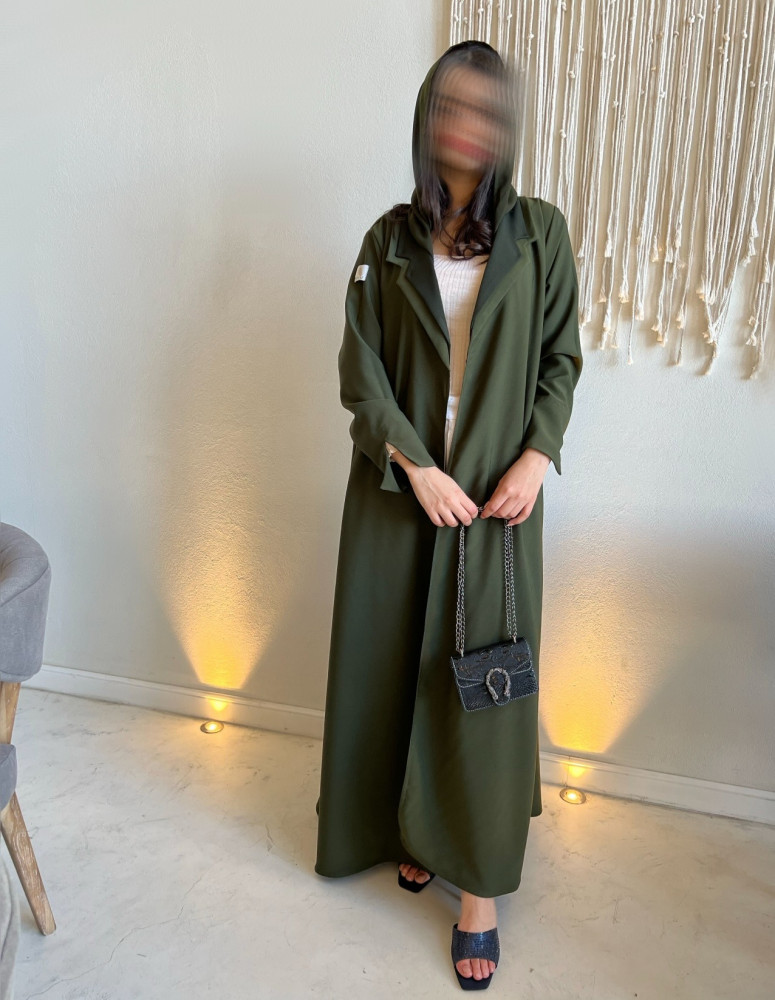 التفاصيل : قماش كريب زيتي قصة كلوش ، طرحة زيتي .