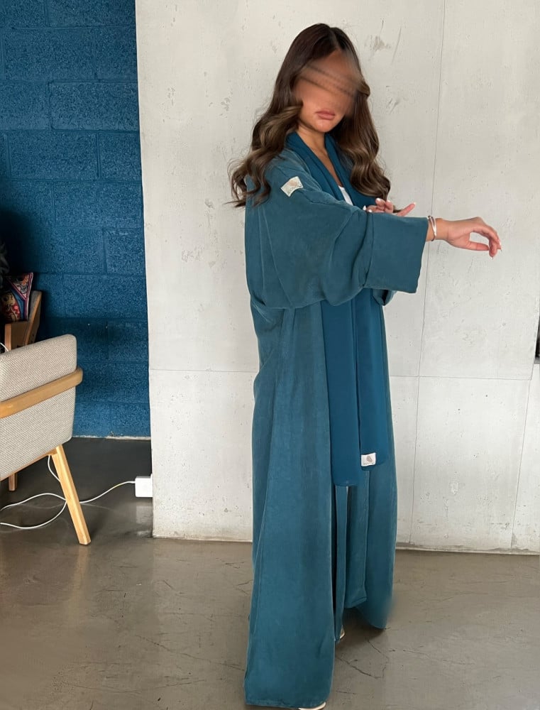التفاصيل : قماش حرير مغسول، قصة نص بشت، طرحة أزرق .