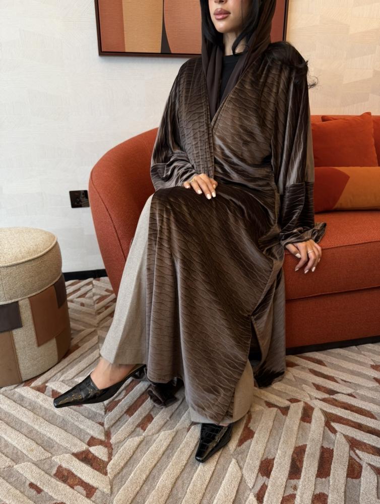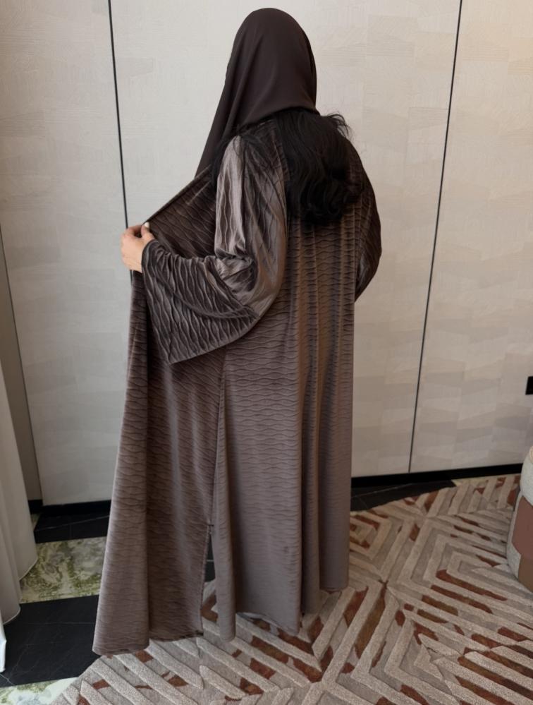 قماش مخمل ، قصة ربع بشت مع فتحات جانبية ، طرحة سادة.