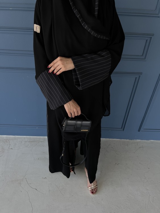 قماش كريب ملكي وكريب مخطط ،قصة كلوش ، طرحة أسود .