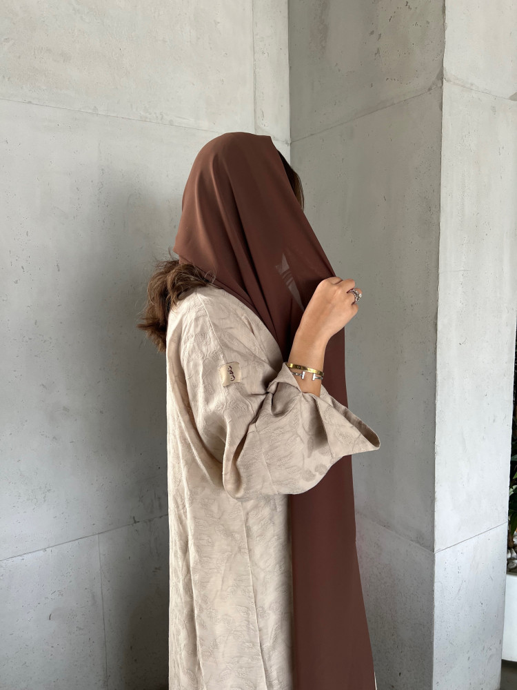 التفاصيل : قماش لنن طبيعي مشجر ، قصة نص كلوش، طرحة بني.
