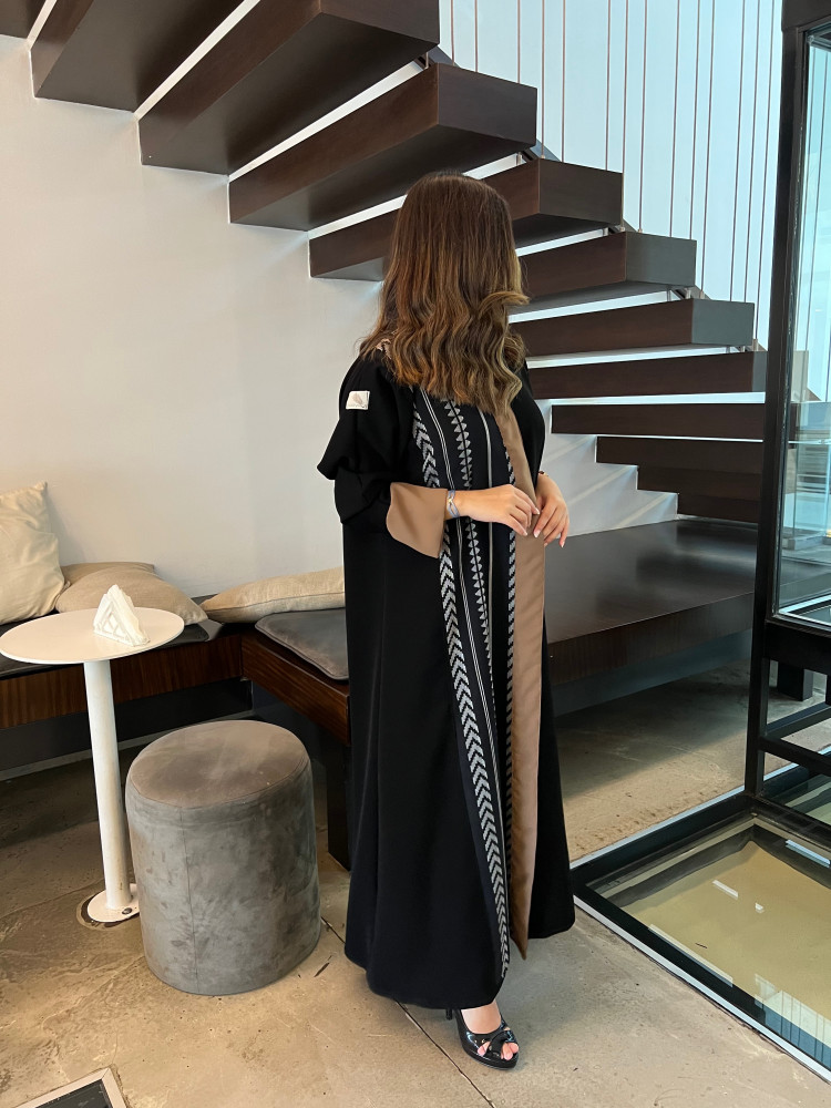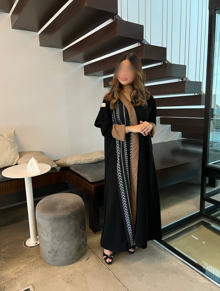التفاصيل : قماش كريب سراميك وياباني ، قصة كلوش، طرحة أسود .