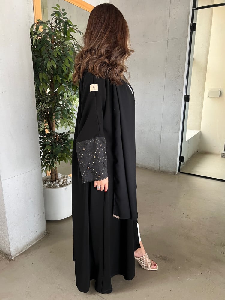 التفاصيل : قماش كريب ملكي ومطرز هندي ،قصة نص كلوش، طرحة أسود .